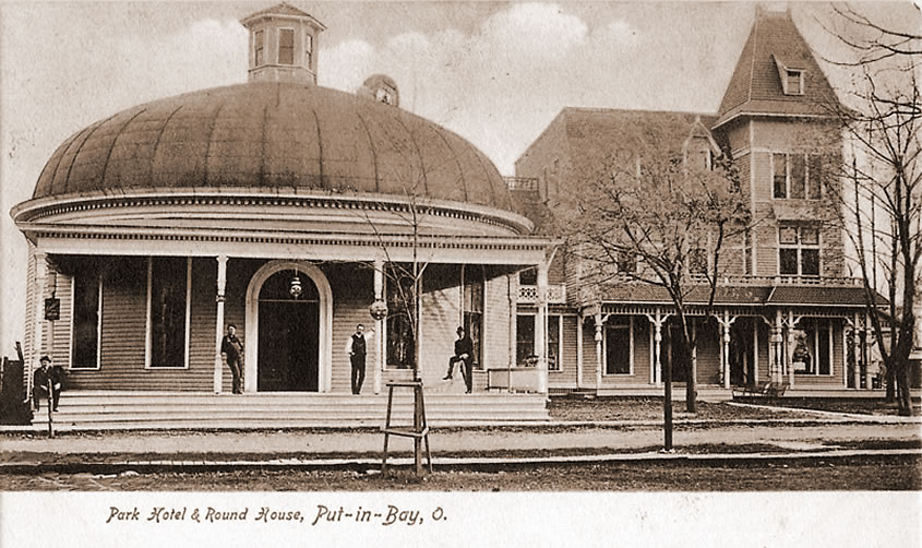 The Victorian lobby is open to the public and has period antiques, the hotel's original fireplace and a large front picture window decorated with rare Bavarian etched ruby glass panes of birds native to the island. The hotel also has its original press tin ceilings. The Victorian era traveler who stayed here saw the hotel much as the present day traveler sees it today. The Park Hotel was originally the Deutsches Hotel and was one of the smaller Put-in-Bay establishments in the 1870's with just 26 original rooms.